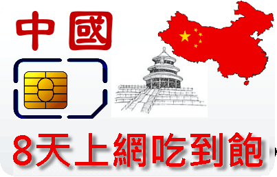 ● 中港澳(包含蒙古)上網 8日上網吃到飽