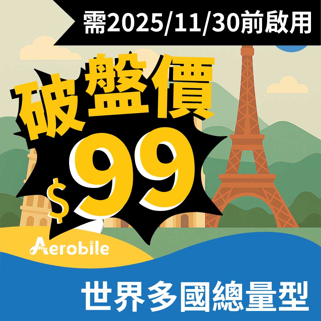 【破盤價只要$99】新環歐-世界多國 15天 跨國上網 吃到飽(6GB高速) (A60)-(需2025/11/30前啟用)